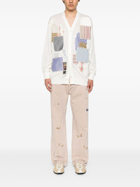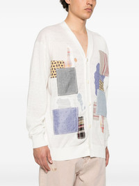linen cardigan Highlights - White - Front button fastening - Patchwork detailing - V-neck - Long sleeves Imported Composition Linen/Flax 100% SIZE & FIT Model measurements Height 6 ft 2 in(1.87 m) Bust/Chest 36.22 in(92 cm) Hips 37.79 in(96 cm) Waist 29.13 in(74 cm) FittingInformation Designed to be unstructured, offering a loose fit throughout The ribbed hem offers a close, comfortable fit Made with a lightweight knit, this piece offers some stretch