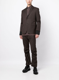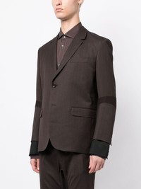 panelled wool blazer Highlights - Brown - Wool - Knitted construction - Panelled design - Front button fastening - Chest welt pocket - Two front flap pockets - Peak lapels - Long sleeves - Straight hem Imported Composition Wool 100% SIZE & FIT Model measurements Height 6 ft 2 in(1.89 m) Bust/Chest 37.4 in(95 cm) Hips 36.61 in(93 cm) Waist 28.34 in(72 cm) Washing instructions Dry Clean Only
