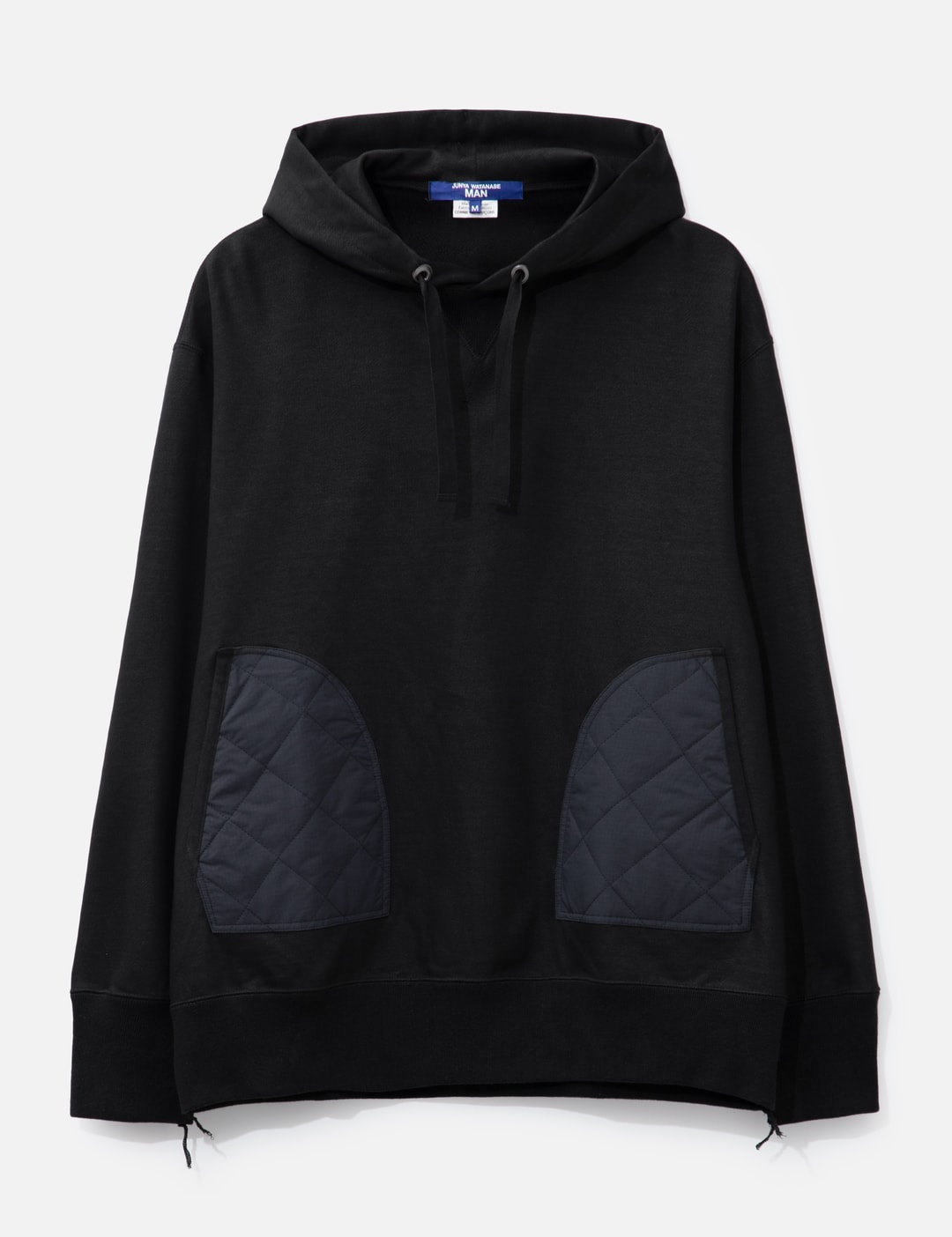 - Junya Watanabe Man - Quilt Pocket Hoodie - Medium weight loopback cotton fabric - Drawcord hood - Two front pockets - Quilt panels on front pockets and elbows - Ribbed cuffs and hem - Color: Black - Material: 100% Cotton; 100% Polyester - See more Hoodies and Clothing