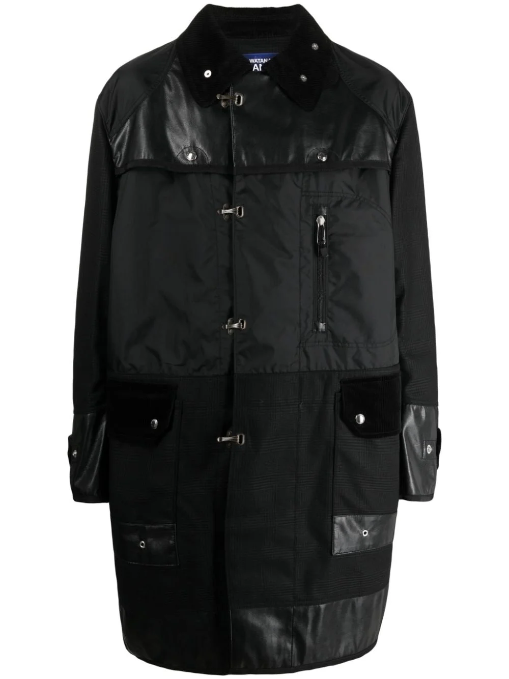 panelled single-breasted parka Highlights - Black - Cotton - Straight-point collar - Front hook and eye fastening - Long sleeves - Buttoned cuffs - Zip-fastening chest pocket - Two front patch pockets - Straight hem - Mid-length Imported Composition Outer: Cotton 100%, Polyurethane Resin 100%, Nylon 100% Lining: Polyester 100%, Cotton 80% SIZE & FIT Model measurements Height 6 ft 0 in(1.84 m) Bust/Chest 35.82 in(91 cm) Hips 37 in(94 cm) Waist 28.34 in(72 cm) Washing instructions Dry Clean Only