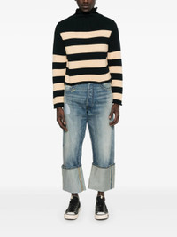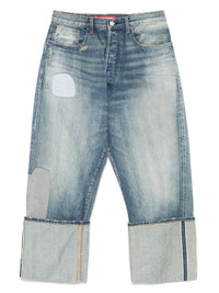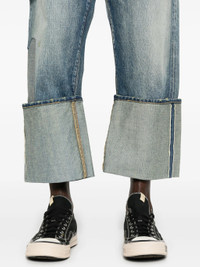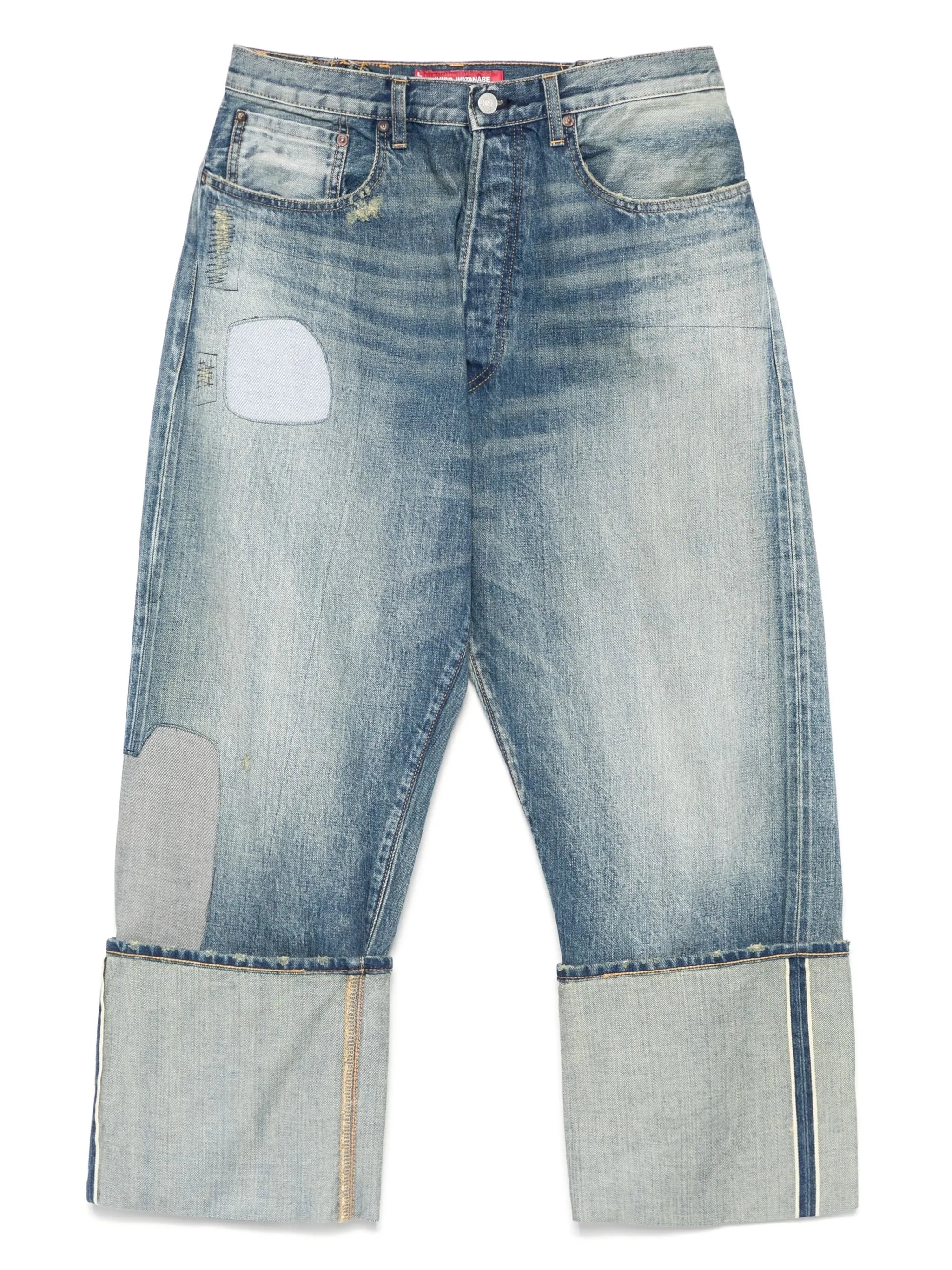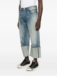indigo blue button fly fastening classic five pockets belt loops whiskering effect - Color: BLUE - Made in: Japan - Designer Style ID: WO-P908 INDIG Composition and care Outer Composition Cotton: 100.0%, Lining Composition Cotton: 97.0%, Outer Composition Calf Leather: 100.0%, Lining Composition Polyurethane: 3.0%