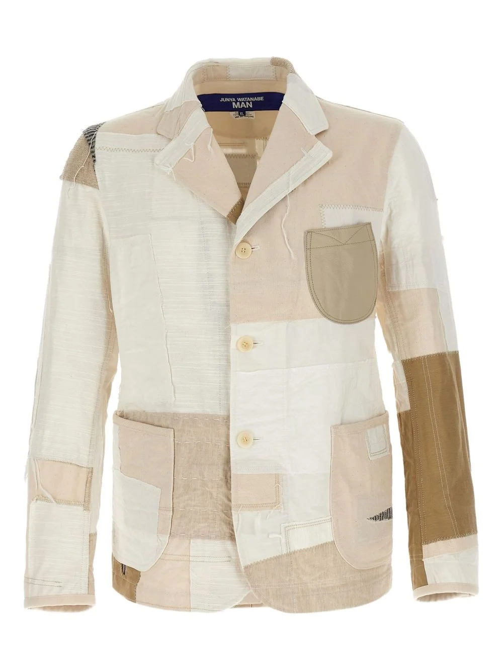 patchwork blazer Highlights - Sand beige - Front button fastening - Chest patch pocket - Side patch pockets - Buttoned cuffs Imported Composition Cotton 87%, Linen/Flax 8%, Polyester 4%, Nylon 1%