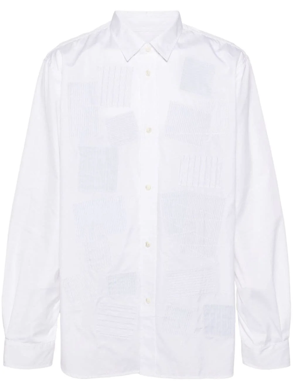 patchwork-detail cotton shirt Highlights - White/light blue - Cotton - Classic collar - Front button fastening - Long sleeves - Buttoned cuffs - Patchwork design - Curved hem Imported Composition Cotton 100%