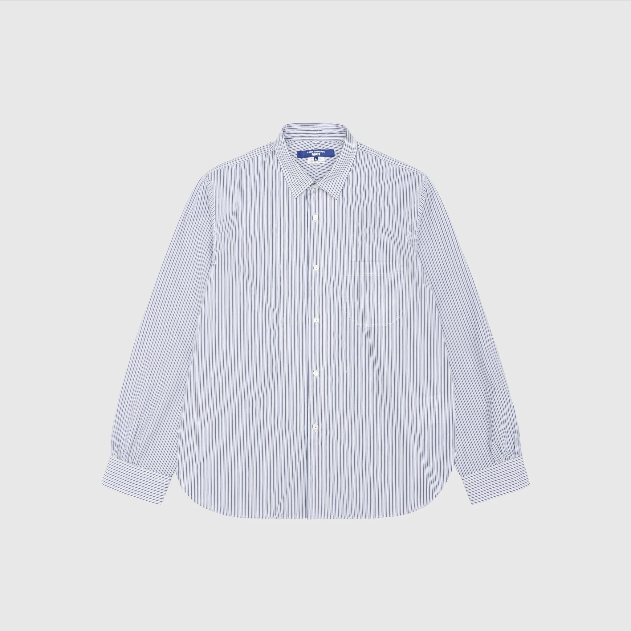 - WO-B010-051-1 - White/Saxe/Navy - 100% Cotton - Front button closure - Front chest pocket - Rounded hem - SS25 - Made in Japan