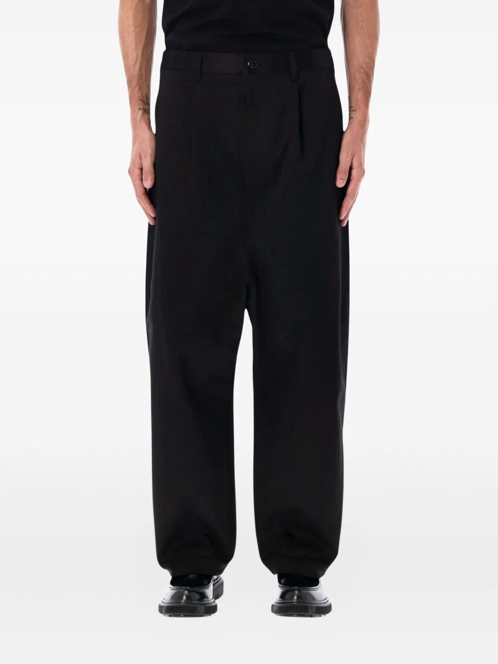 pleated trousers Highlights - Black - Pleat detailing - Belt loops - Button fastening - Side seam pockets - Rear welt pockets Imported Composition Fabric 100% Washing instructions Read Manufacturer Guidelines