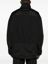 pouch-pocket panelled jacket Highlights - Black - Panelled design - Logo patches to the front - Tonal stitching - Stand-up collar - Concealed front fastening - Long sleeves - Two front pouch pockets - Straight hem Imported Composition Outer: Polyester 100%, Nylon 100%, Rayon 100% Lining: Polyester 100% SIZE & FIT Model measurements Height 6 ft 0 in(1.84 m) Bust/Chest 35.82 in(91 cm) Hips 37 in(94 cm) Waist 28.34 in(72 cm) FittingInformation Designed to be unstructured, offering a loose fit throughout The adjustable drawstring means that you can adjust this piece’s fit to suit your comfort and preference Made from a midweight non-stretch fabric This piece fits true to size – take your usual size Washing instructions Dry Clean Only