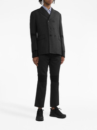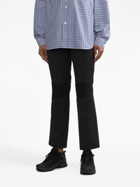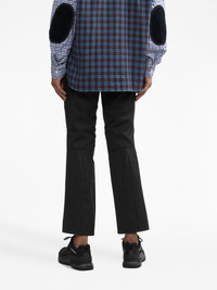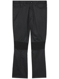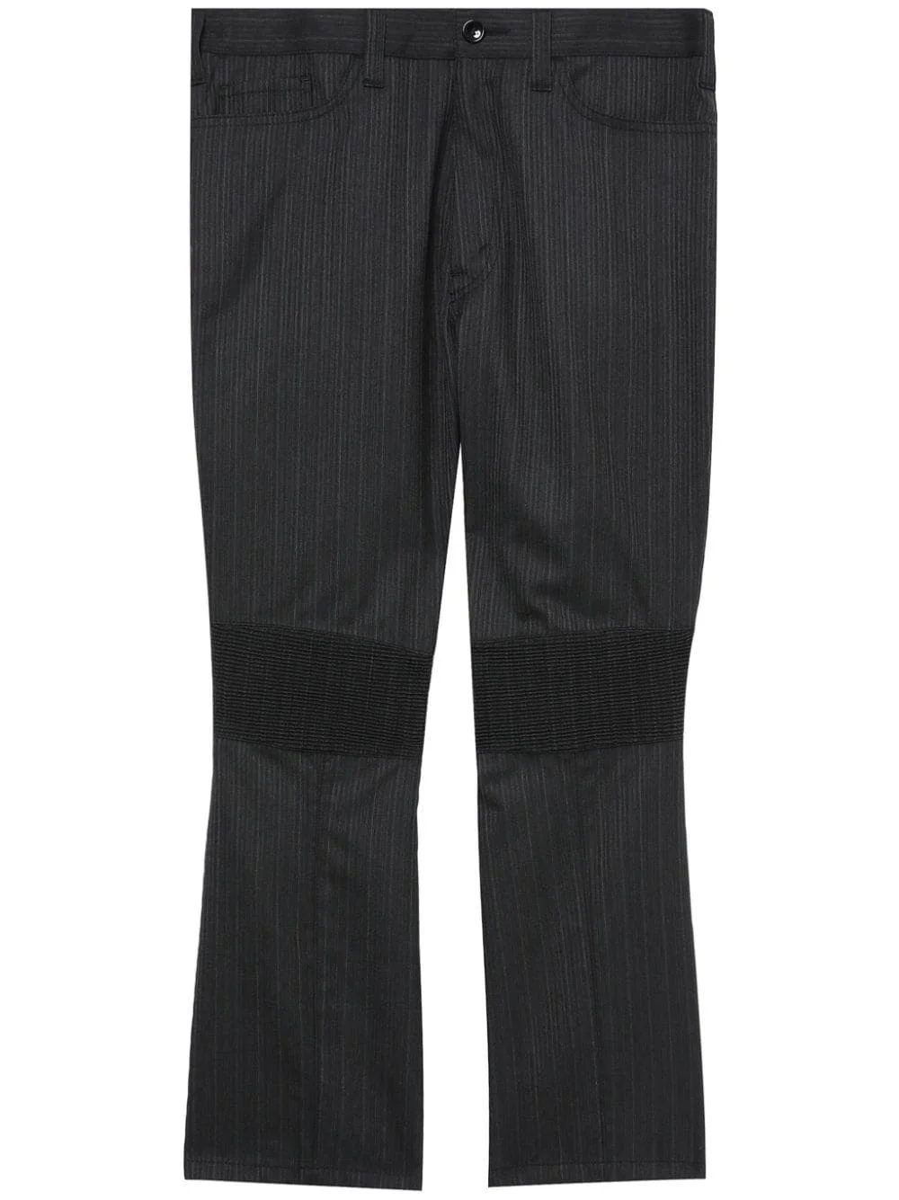 smocked-panel flared cropped trousers Highlights - Dark grey - Wool - Smocked panel - Vertical stripe pattern - Belt loops - Classic five pockets - Front button fastening - Flared - Cropped Imported Composition Wool 100%