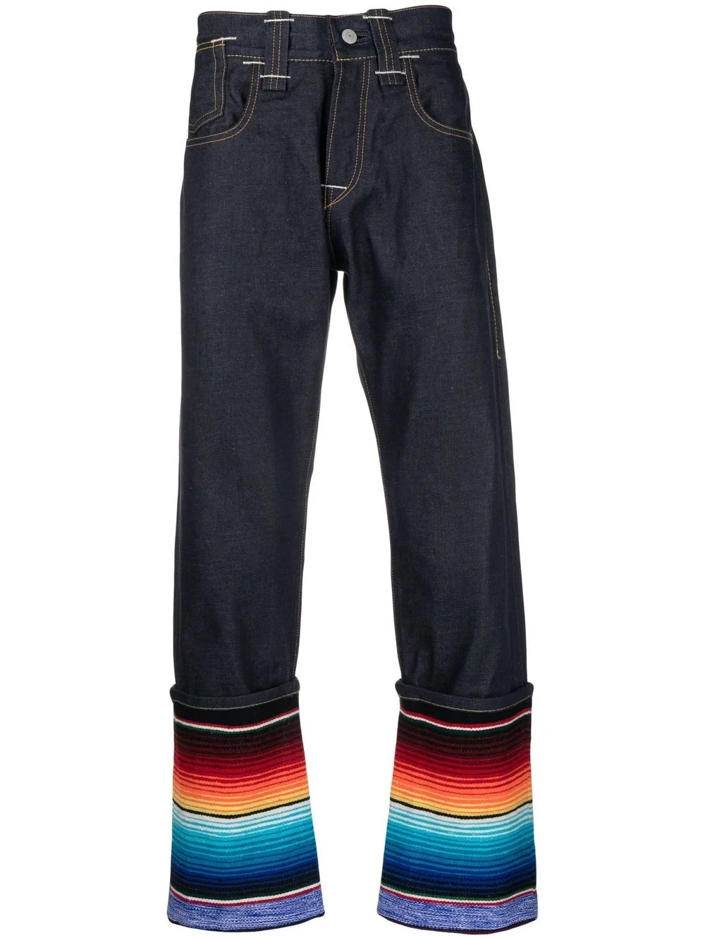 stripe-detail straight-leg jeans blue/multicolour cotton rainbow stripe detailing logo patch to the rear belt loops front button and zip fastening classic five pockets straight leg Imported Composition Cotton 100%, Acrylic 93%, Polyester 6%, other fibers 1% SIZE & FIT Model measurements Height 6 ft 1 in(1.85 m) Bust/Chest 35.82 in(91 cm) Hips 37.79 in(96 cm) Waist 29.13 in(74 cm) FittingInformation This piece fits true to size. We recommend you get your regular size Regular fit Made with a mid-weight non-stretch fabric Washing instructions Hand Wash