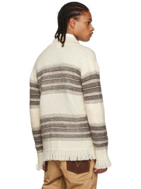 Knit wool zip-up sweater. Stripe pattern throughout. · Rib knit mock neck · Zip closure · Patch pockets · Fringe trim at hem and cuffs Part of the Junya Watanabe x Comme des Garçons collaboration. Supplier color: Natural 100% wool.