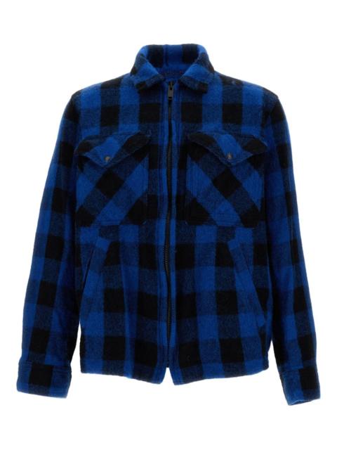tartan check zip-front shirt jacket Highlights - Blue - Black check pattern - Zip closure - Four pockets - Chest pockets - Buttoned flap pockets Imported Composition Wool 100% Washing instructions Read Manufacturer Guidelines