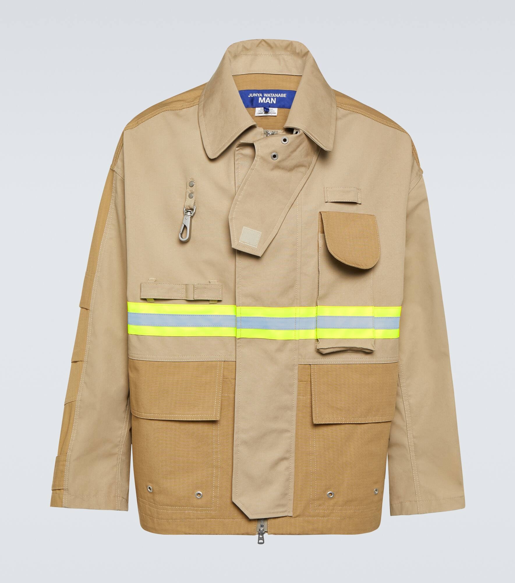 Product Details - Material: 89% cotton, 11% linen - Pockets: flap chest pocket, flap pockets, internal pockets, zipped pockets - Care instructions: machine wash at 30 degrees - Made in Japan - Designer color name: Off Bge X Bge - Trim: 70% cotton, 30% polyamide - Lining: 100% polyamide - Closure: VELCRO® fastening, snap-buttoned fastenings, concealed zipper - Item number: P00910557 Size & Fit - Fits large to size - we recommend trying one size smaller - Dropped shoulders - Oversized - Non-stretchy fabric - Falls below the hip - The model in the picture is 185cm-6'1" and wearing a size S