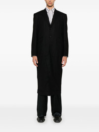 pinstripe coat Highlights - Black - Wool - Twill weave - Panelled design - Pinstripe pattern - Front button fastening - Classic collar - Long sleeves - Buttoned cuffs - Chest welt pocket - Dart detailing - Two front flap pockets - Full lining - Internal pocket - Straight hem Imported Composition Outer: Wool 100% Lining: Cupro 100% SIZE & FIT Model measurements Height 6 ft 2 in(1.87 m) Bust/Chest 36.22 in(92 cm) Hips 35.43 in(90 cm) Waist 29.13 in(74 cm) FittingInformation Designed for a slim fit, offering a comfortable fit that sits just away from the body The internal shoulder pads offer a structured shape Made from a midweight non-stretch fabric