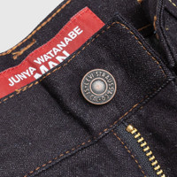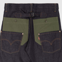 - WM-P911-100-1 - Indigo/Khaki - 70% Cotton, 30% Linen - Zipper and button closure - Two front welted pockets - Two rip-stop pockets with button closure - Two back patch pockets - Adjustable cinch tab at the back - Rivet detailing throughout - Straight fit - SS24 - Made in Japan