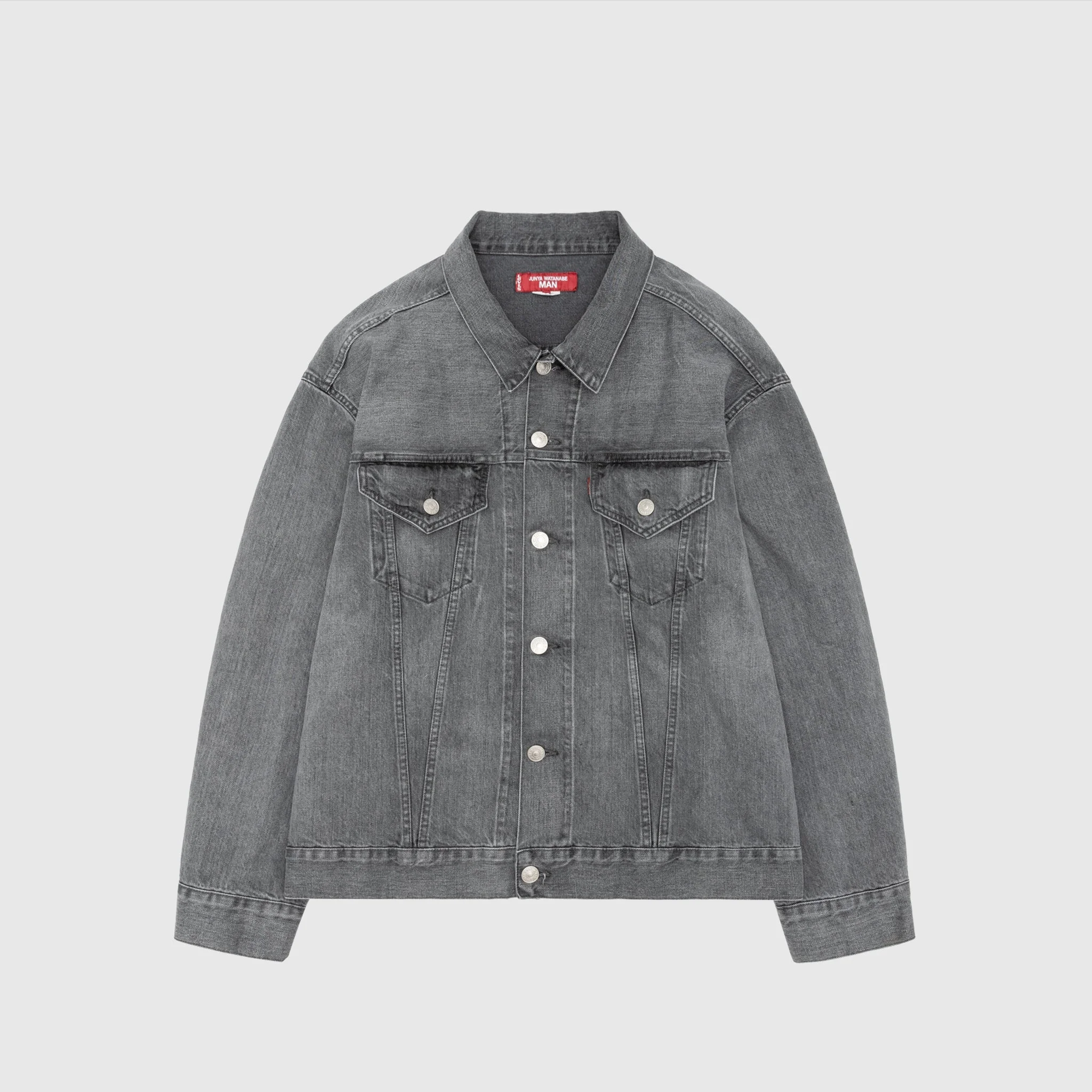 - WO-J203-051-1 - Grey - 100% Cotton - Front button closure - Two front pockets with flap and button closure - Adjustable button cuffs - Waist adjusters - Dropped shoulder - Oversized fit - SS25 - Made in Japan
