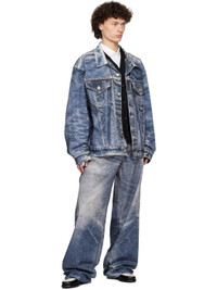 Cotton twill jacket. Trompe l'oeil denim graphic printed throughout. · Spread collar · Button closure · Flap pockets · Logo flag at chest · Buttoned barrel cuffs · Adjustable button tabs at back hem Part of the Junya Watanabe x Levi's collaboration, within the eYe Junya Watanabe MAN collection. Supplier color: Indigo 100% cotton. Made in Japan 251253M177003