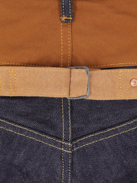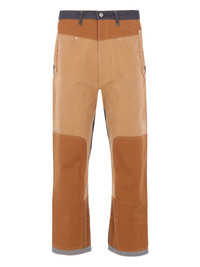 patchwork canvas jeans Highlights - Brown/blue - Cotton - Belt loops - Multiple pockets - Back cinch strap - Button closure and concealed fly Imported Composition Cotton 100% Washing instructions Read Manufacturer Guidelines