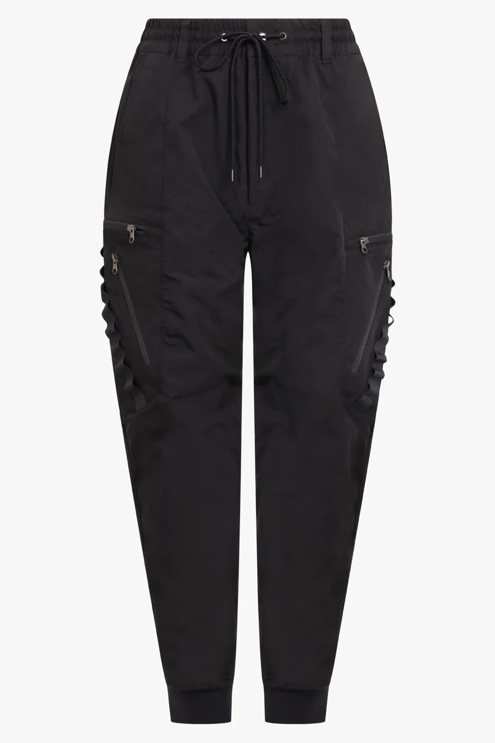 - Drawstring at elasticised waistband - Four-pocket styling · Zip-fly - Flap pocket at out seams - Elasticised cuffs Fabrication: 100% Cotton, 100% Nylon. Size and Fit Lea: Model is 170cm/5’6” and is wearing a size S Model Measurements: Bust: 84cm, Waist: 69cm, Hips 80cm True to size Measurements Size S: Waist 70cm, Hips 88cm, Length 102cm Size M: Waist 76cm, Hips 92cm, Length 102cm