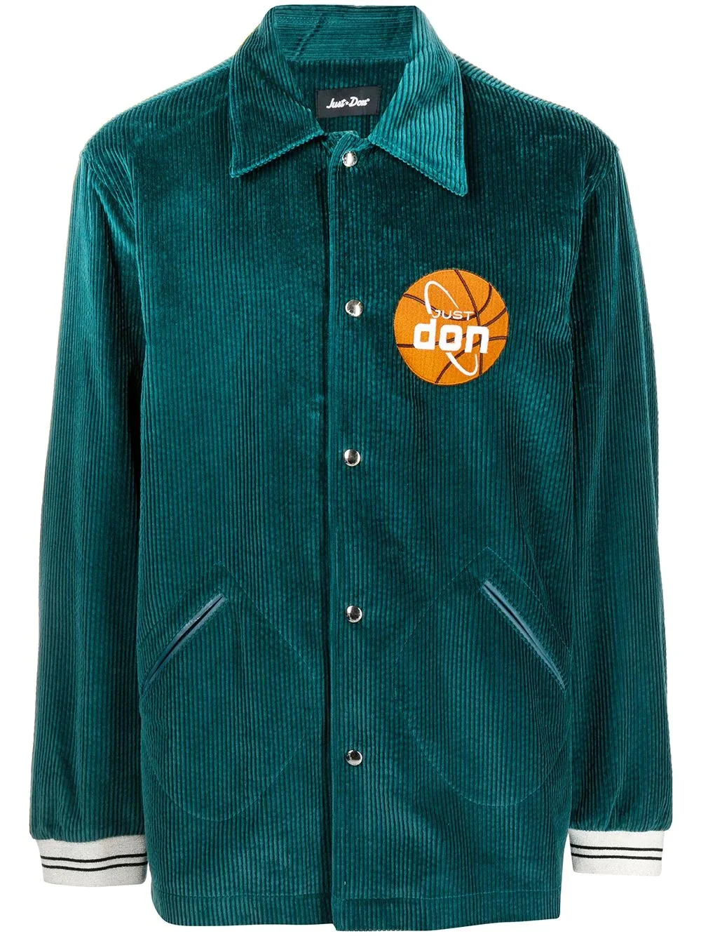 basketball corduroy jacket green cotton corduroy embroidered motif stripe trim pointed flat collar snap fastening two side slash pockets long sleeves logo-print lining Made in Italy Composition Cotton 100% SIZE & FIT Model measurements Height 6 ft 2 in(1.88 m) Bust/Chest 38.18 in(97 cm) Hips 37 in(94 cm) Waist 29.92 in(76 cm) Washing instructions Dry Clean Only