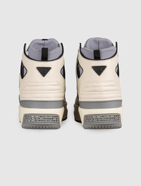 High top sneaker. Leather upper. Stitched suede overlays around the toe and heel. Front polyester lacing. Rubberized logo on the tongue. TPU cage inserts on the upper with leather panels stitched on top. Neoprene sock. Molded rubber midsole and outsole. - Leather SKU: 32JUSQ01-226350-99