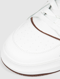 Low top sneakers. Leather overlays around the toe, eyelets, and heel counter. Perforated leather toe box. Leather side panels with piping detailing. Front lacing. Synthetic TPU heel insert. Rubber midsole. Rubber outsole. - Leather upper SKU: 32JUSQ03-226351-25