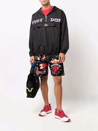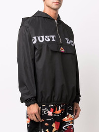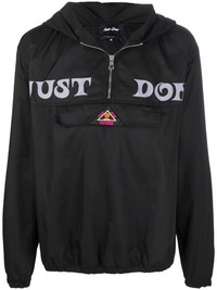 logo-print hooded windbreaker black lightweight construction classic hood short front zip fastening front flap pocket long sleeves elasticated cuffs elasticated hem straight hem Made in Italy Composition Polyester 100%, Polyamide 95%, Elastane 5% SIZE & FIT Model measurements Height 6 ft 1 in(1.85 m) Bust/Chest 37.79 in(96 cm) Hips 37.4 in(95 cm) Waist 30.7 in(78 cm) FittingInformation This piece fits true to size. We recommend you get your regular size Cut for a loose fit Made with a mid-weight fabric Washing instructions Hand Wash
