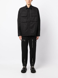 classic-collar concealed-fastening shirt jacket Highlights - Black - Cotton - Classic collar - Concealed front fastening - Long sleeves - Buttoned cuffs - Two front flap pockets Imported Composition Cotton 100% SIZE & FIT Model measurements Height 6 ft 2 in(1.87 m) Bust/Chest 34.25 in(87 cm) Hips 36.22 in(92 cm) Waist 29.52 in(75 cm) FittingInformation Designed for an oversized fit, offering additional room throughout The internal drawstring at the hem allows for fitted preferences Made from a midweight non-stretch fabric This piece fits true to size – take your usual size Washing instructions Dry Clean Only