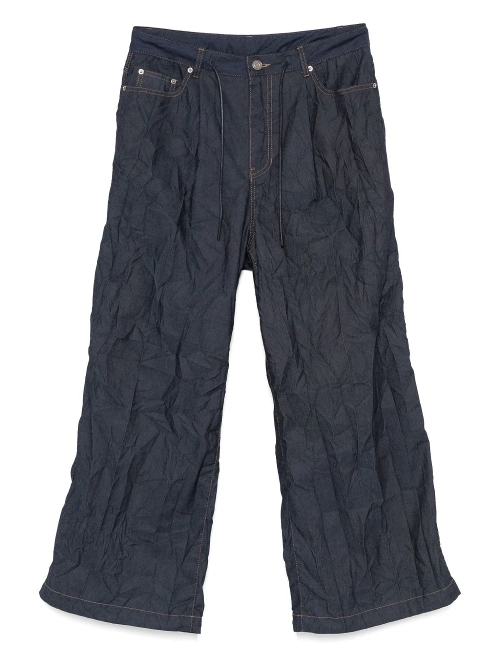 crease-effect trousers Highlights - Indigo blue - Concealed fly and button fastening - Belt loops - Elasticated waistband with internal drawstring - Classic five pockets Imported Composition Cotton 65%, Polyester 32%, Polyurethane 3%