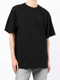 relaxed crew-neck T-shirt black cotton crew neck short sleeves straight hem Imported Composition Body: Cotton 100% SIZE & FIT Model measurements Height 6 ft 2 in(1.87 m) Bust/Chest 34.25 in(87 cm) Hips 36.22 in(92 cm) Waist 29.52 in(75 cm) Measurement CHEST 46.85 in(119 cm) SLEEVE LENGTH 16.73 in(42.5 cm) LENGTH 29.13 in(74 cm) Shoulder Width 21.65 in(55 cm) FittingInformation This piece fits true to size. We recommend you get your regular size Cut for a relaxed fit Made with a mid-weight fabric Washing instructions Machine Wash