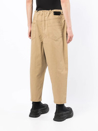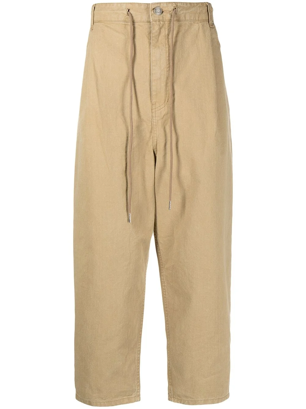 cropped tapered-leg trousers pale beige cotton mid-rise drawstring fastening waist front button and zip fastening classic five pockets Imported Composition Cotton 100% SIZE & FIT Model measurements Height 6 ft 2 in(1.87 m) Bust/Chest 34.25 in(87 cm) Hips 36.22 in(92 cm) Waist 29.52 in(75 cm) FittingInformation This piece fits true to size. We recommend you get your regular size Designed for a slim fit at the waist and loose over the leg Made with a mid-weight fabric Washing instructions Dry Clean Only