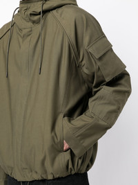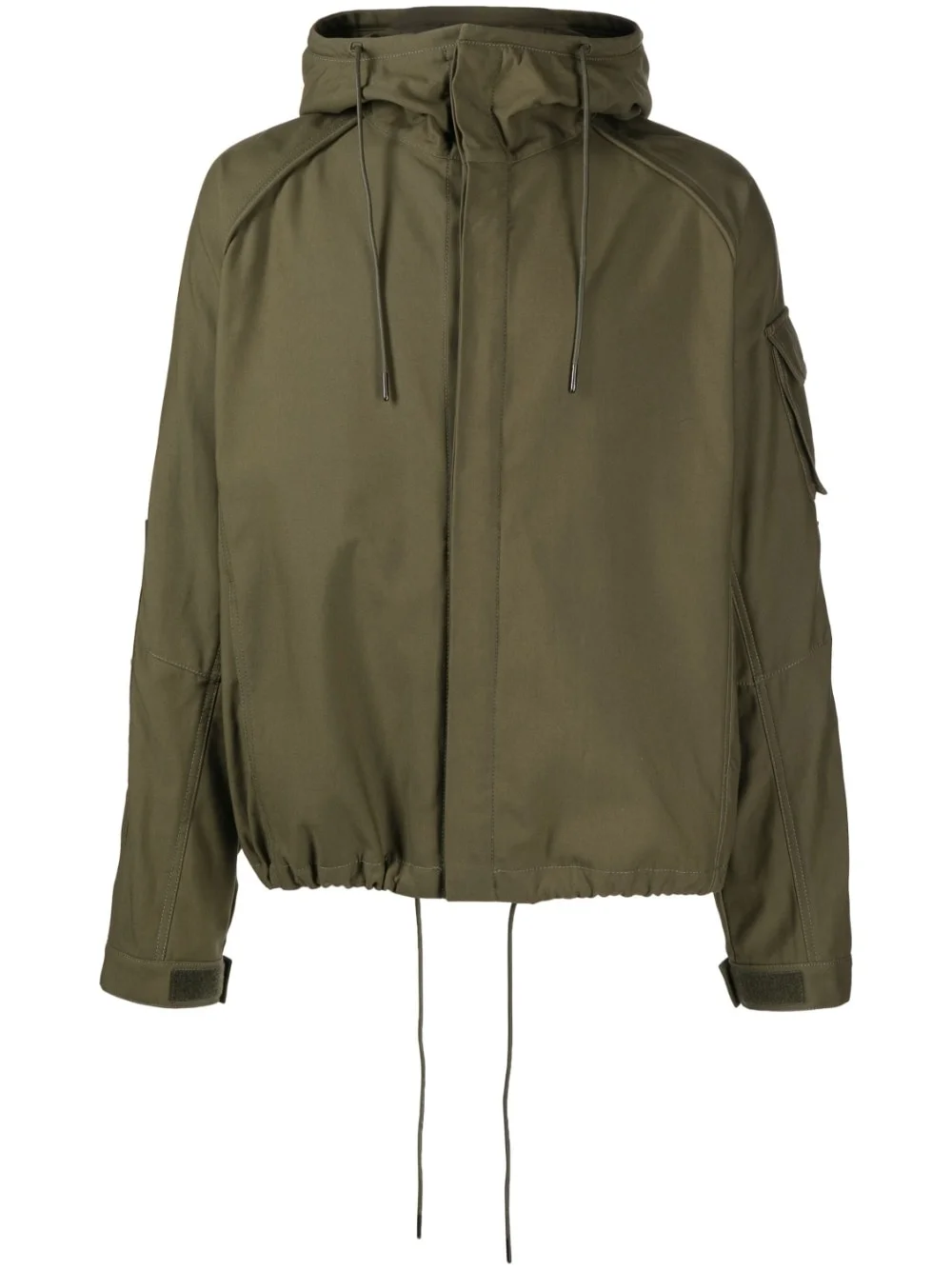 drawstring-hood high-neck jacket Highlights - Khaki - Cotton blend - Slouchy drawstring hood - High neck - Concealed front fastening - Long sleeves - Two side slit pockets - Sleeve flap pocket - Elasticated hem Imported Composition Cotton 73%, Nylon 27% SIZE & FIT Model measurements Height 6 ft 2 in(1.87 m) Bust/Chest 34.25 in(87 cm) Hips 36.22 in(92 cm) Waist 29.52 in(75 cm) FittingInformation Designed to be unstructured, offering a loose fit throughout Made from a midweight non-stretch fabric This piece fits true to size – take your usual size Washing instructions Dry Clean Only