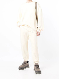 drawstring track pants ivory cotton two side slit pockets two rear welt pockets drawstring fastening waist straight leg elasticated hem Imported Composition Cotton 100% SIZE & FIT Model measurements Height 6 ft 1 in(1.85 m) Bust/Chest 40.15 in(102 cm) Hips 37.79 in(96 cm) Waist 29.52 in(75 cm) FittingInformation This piece fits true to size. We recommend you get your regular size Designed to be loose over the leg with a fitted waist and hem Made with a mid-weight fabric Washing instructions Dry Clean Only