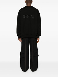 embroidered-logo sweatshirt Highlights - Black - Cotton blend - Jersey texture - Rubberised slogan to the chest - Embroidered logo and slogan to the rear - Crew neck - Long sleeves - Ribbed cuffs and hem - Straight hem Imported Composition Cotton 80%, Polyester 20% SIZE & FIT Model measurements Height 6 ft 2 in(1.88 m) Bust/Chest 36.61 in(93 cm) Hips 35.82 in(91 cm) Waist 27.95 in(71 cm) FittingInformation Designed for an oversized fit, offering additional room throughout Made from a midweight non-stretch fabric, this piece offers minimal elasticity when worn This piece fits true to size – take your usual size Washing instructions Hand Wash