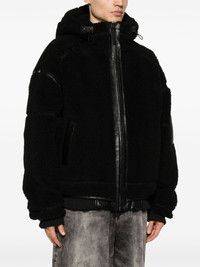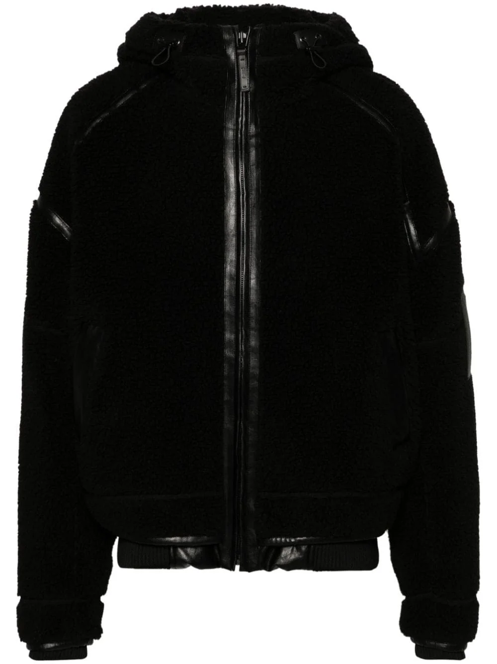 faux-shearling hooded jacket Highlights - Black - Faux shearling - Panelled design - Drawstring hood - Long sleeves with elasticated cuffs - Sleeve zip pocket - Two side welt pockets - Full lining - Elasticated straight hem Imported Composition Outer: Polyester 72%, Wool 28% Lining: Polyester 100%, Nylon 100% SIZE & FIT Model measurements Height 6 ft 1 in(1.86 m) Bust/Chest 37.4 in(95 cm) Hips 36.22 in(92 cm) Waist 29.52 in(75 cm) FittingInformation Designed to be unstructured, offering a loose fit throughout The ribbed hem offers a close, comfortable fit Made from a midweight non-stretch fabric This piece fits true to size – take your usual size Washing instructions Do Not Wash/Do Not Dry Clean