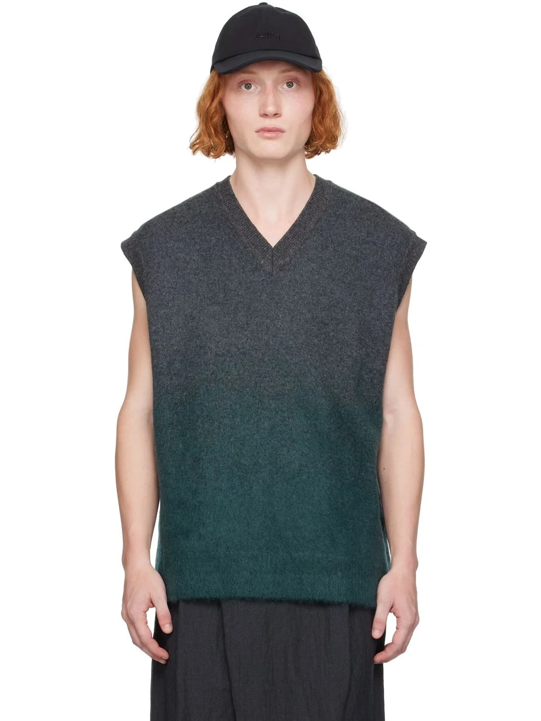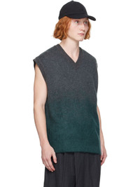 Knit wool- and mohair-blend vest. Jacquard gradient throughout. · Rib knit V-neck, hem, and armscyes · Button vent at side seams Supplier color: Green 36% wool, 21% mohair, 21% nylon, 18% acrylic, 4% polyester. Made in South Korea 242343M206000