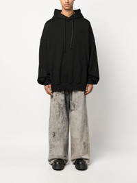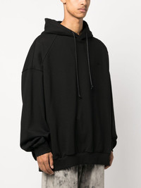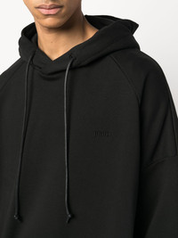 drawstring cotton hoodie Highlights - Jet black - Cotton - Knitted construction - Embroidered logo at the chest - Logo print to the rear - Graphic print to the rear - Drawstring hood - Drop shoulder - Extra-long sleeves - Ribbed cuffs and hem - Elasticated cuffs and hem Imported Composition Cotton 100% SIZE & FIT Model measurements Height 6 ft 2 in(1.87 m) Bust/Chest 38.18 in(97 cm) Hips 36.61 in(93 cm) Waist 29.13 in(74 cm) Measurement CHEST 58.26 in(148 cm) SLEEVE LENGTH 22.83 in(58 cm) Shoulder Width 29.92 in(76 cm) LENGTH 28.34 in(72 cm) FittingInformation Designed for an oversized fit, offering additional room throughout Made from a midweight fabric This piece fits true to size – take your usual size
