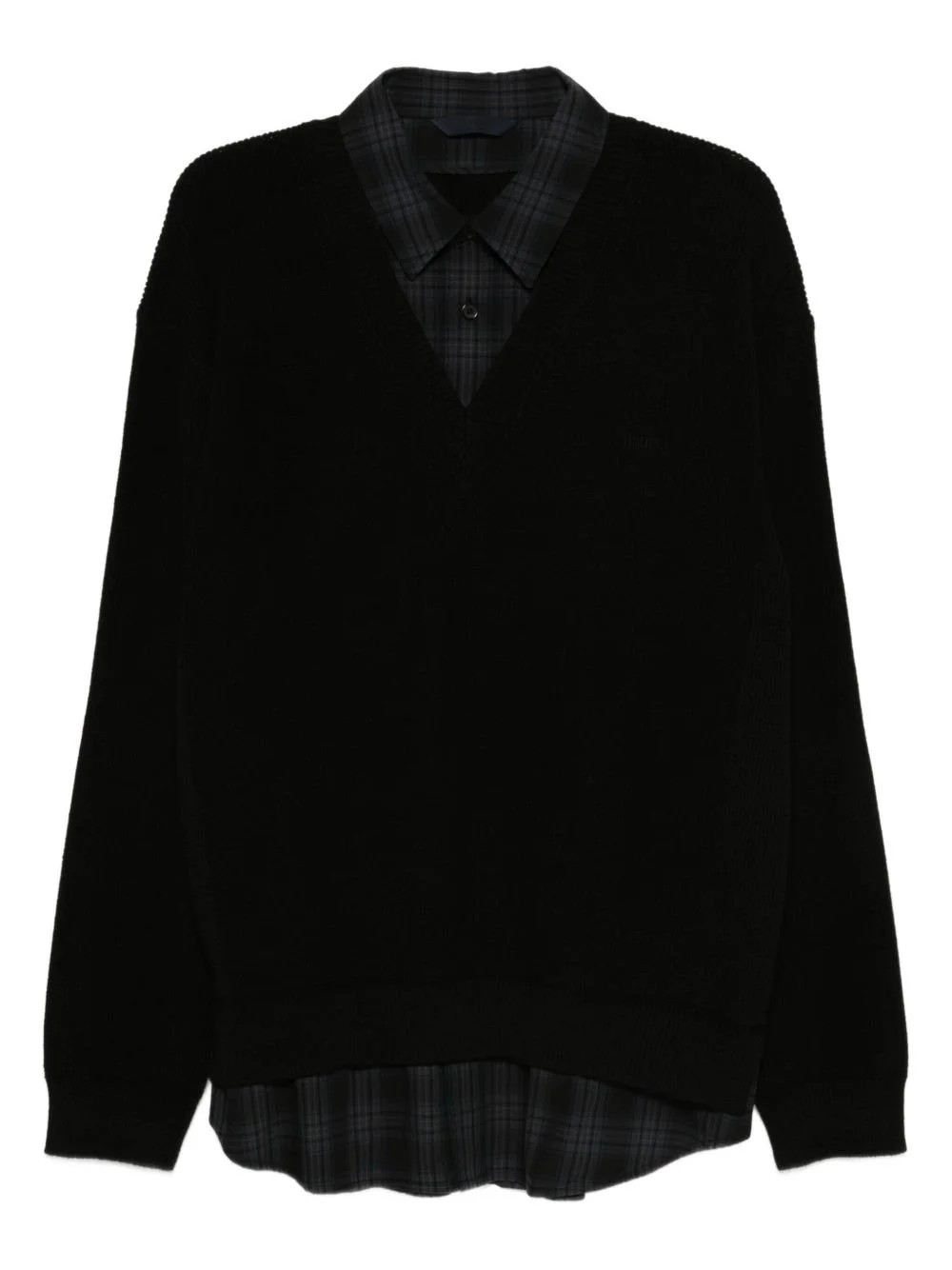 layered sweater Highlights Imported Composition Natural Fibres 51%, Acrylic 18%, Wool 16%, Cotton 12%, Nylon 3% SIZE & FIT Model measurements Height 6 ft 1 in(1.85 m) Bust/Chest 38.58 in(98 cm) Hips 37 in(94 cm) Waist 30.31 in(77 cm)