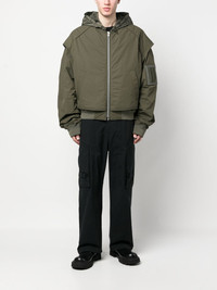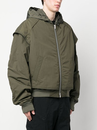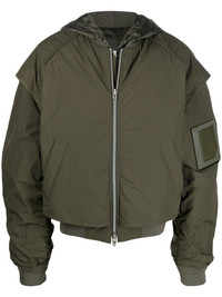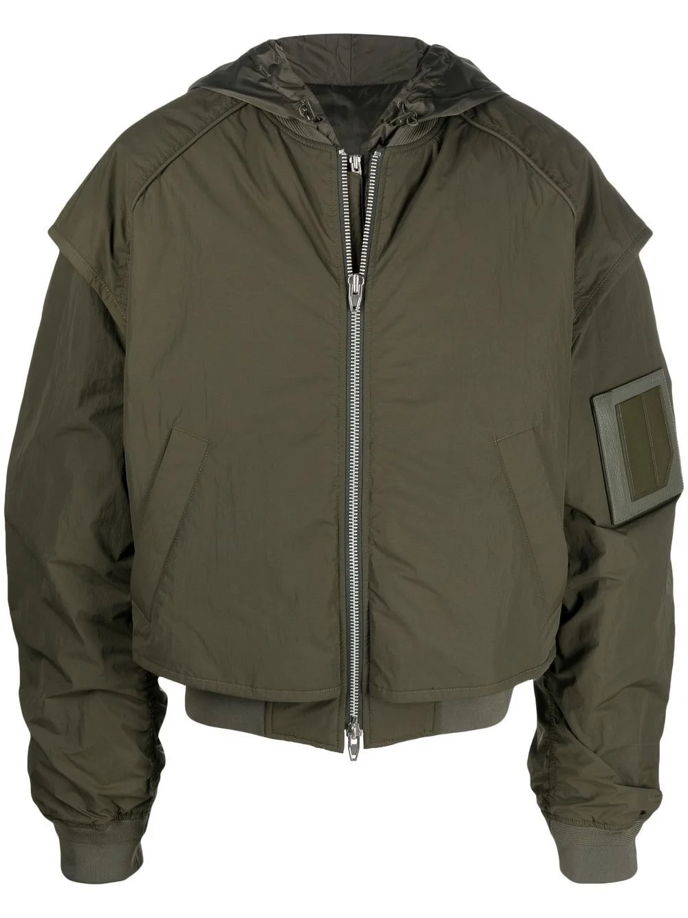 logo-applique bomber jacket khaki ruched detailing classic hood applique logo patch detail front two-way zip fastening two side welt pockets ribbed band collar ribbed cuffs and hem straight hem Imported Composition Outer: Nylon 100% Lining: Polyester 57%, Viscose 43% SIZE & FIT Model measurements Height 6 ft 2 in(1.87 m) Bust/Chest 35.82 in(91 cm) Hips 35.43 in(90 cm) Waist 27.95 in(71 cm) FittingInformation This piece fits true to size. We recommend you get your regular size Cut for a loose fit Made with a mid-weight non-stretch fabric Washing instructions Dry Clean Only