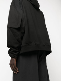 logo-embroidered cotton hoodie Highlights - Black - Cotton - Embroidered logo at the chest - Drawstring hood - Long sleeves - Elasticated cuffs - Two side slit pockets - Straight hem Imported Composition Cotton 100% SIZE & FIT Model measurements Height 6 ft 2 in(1.87 m) Bust/Chest 36.41 in(92.5 cm) Hips 37 in(94 cm) Waist 29.52 in(75 cm) Measurement CHEST 54.33 in(138 cm) SLEEVE LENGTH 24.4 in(62 cm) Shoulder Width 27.16 in(69 cm) LENGTH 26.77 in(68 cm) FittingInformation Designed to be unstructured, offering a loose fit throughout Made from a midweight non-stretch fabric, this piece offers minimal elasticity when worn This piece fits true to size – take your usual size Washing instructions Machine Wash