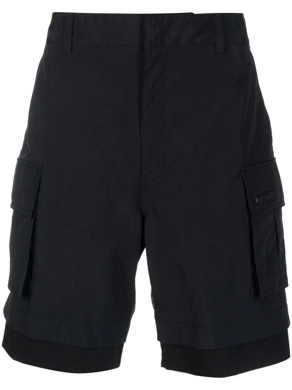 cotton cargo shorts navy blue cotton mid-rise concealed front fastening belt loops two side slit pockets two side cargo pockets two rear flap pockets knee-length Imported Composition Nylon 100%, Cotton 100% SIZE & FIT Model measurements Height 6 ft 2 in(1.87 m) Bust/Chest 36.41 in(92.5 cm) Hips 37 in(94 cm) Waist 29.52 in(75 cm) FittingInformation This piece fits true to size. We recommend you get your regular size Regular fit Made with a mid-weight non-stretch fabric Washing instructions Dry Clean Only