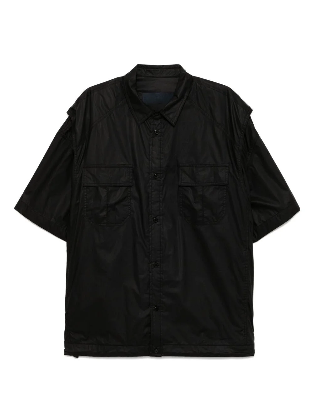short-sleeve shirt Highlights - Black - Front button fastening - Straight hem - Two chest flap pockets - Two side slit pockets Imported Composition Cotton 20%