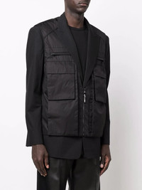 two-layer vest blazer black cotton/wool-blend layered design peak lapels front zip fastening long sleeves two zip-fastening chest pockets two front flap pockets straight hem Imported Composition Outer: Cotton 100%, Polyester 50%, Wool 50% Lining: Nylon 100%, Polyester 57%, Viscose 43% SIZE & FIT Model measurements Height 6 ft 2 in(1.87 m) Bust/Chest 36.41 in(92.5 cm) Hips 37 in(94 cm) Waist 29.52 in(75 cm) FittingInformation This piece fits true to size. We recommend you get your regular size Cut for a loose fit Made with a mid-weight non-stretch fabric Washing instructions Dry Clean Only