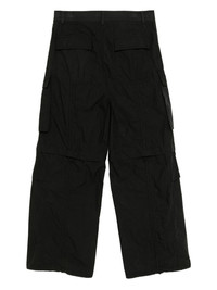 wide-leg cargo pants Highlights - Black - Concealed front button, hook and zip fastening - Elasticated hem Imported Composition Cotton 67%, Nylon 33%