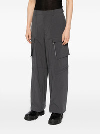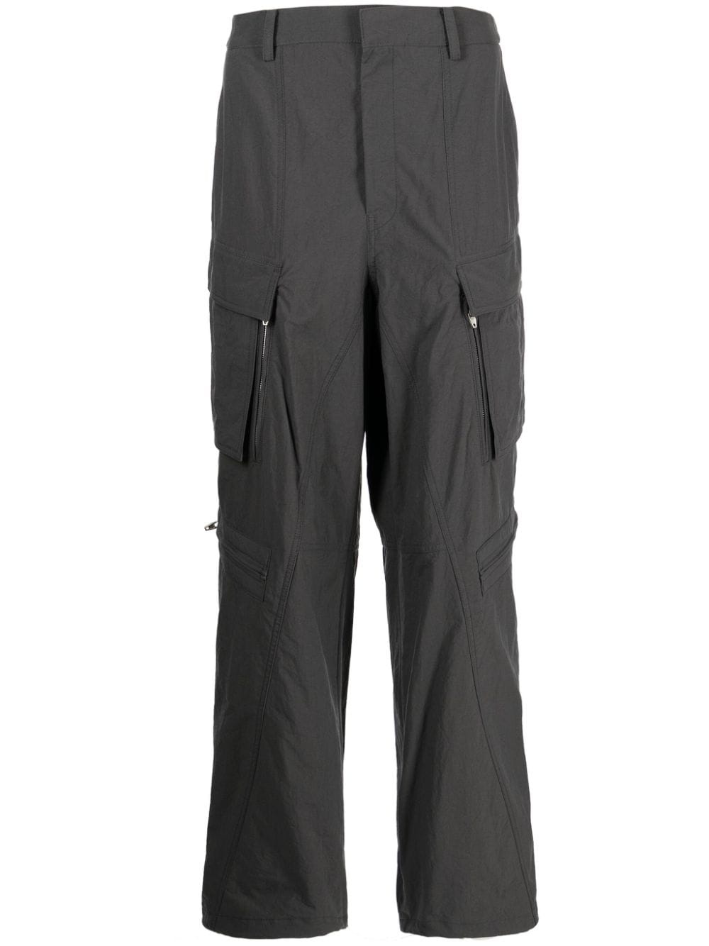 wide-leg cargo trousers Highlights - Medium grey - Tonal stitching - Adjustable side straps - Belt loops - Concealed front fastening - Wide leg - Side zip-fastening pockets - Two side cargo pockets - Straight hem Imported Composition Nylon 100% SIZE & FIT Model measurements Height 6 ft 2 in(1.87 m) Bust/Chest 34.3 in(87 cm) Hips 36.2 in(92 cm) Waist 29.5 in(75 cm) FittingInformation Designed with a wide leg, offering a loose and roomy fit Made from a midweight non-stretch fabric This piece fits true to size – take your usual size