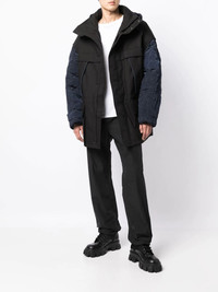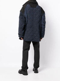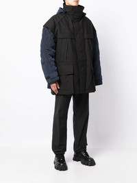zip-up padded jacket jet black cotton blend padded design quilted panels high neck classic hood front press-stud and zip fastening long sleeves two chest flap pockets two front flap pockets straight hem Imported Composition Body: Cotton 100% Lining: Nylon 100% Filling: Polyester 100% SIZE & FIT Model measurements Height 6 ft 2 in(1.87 m) Bust/Chest 34.25 in(87 cm) Hips 36.22 in(92 cm) Waist 29.52 in(75 cm) FittingInformation This piece fits true to size. We recommend you get your regular size Cut for an oversized fit Made with a heavyweight non-stretch fabric Washing instructions Dry Clean Only