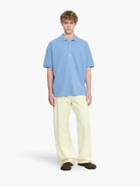 - Oversized fit, dropped shoulder polo top - Tonal buttons - Ribbed cuffs - Contrast circular anchor embroidery on centre front - Unlined Details - Colour: Steel Blue - Composition: 100% Organic Cotton - Sleeve length: 56.5cm - Centre back length: 72cm - Made in: Portugal - SKU: JO0281PG1479768 - Model Height: 185 cm, Model Wearing Size: M