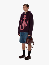 - Signature Oversized zip-front hoodie with anchor motif - Relaxed fit, with dropped shoulder detail - Centre front zip in metal finish - Ribbed cuffs - Oversized style take your usual size Additional Information - Colour: Plum - Composition - Main: 100% Merino Wool - Contrast: 100% Polyester - Made in China