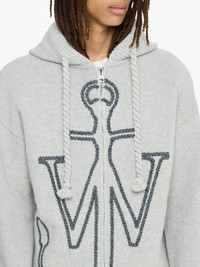 - Relaxed fit, knitted zipped-hoodie complete with anchor embroidery design - Dropped shoulder - Twisted draw-cords - Two way zip - Ribbed cuffs - Rolled hemline - Unlined Details - Colour: Light Grey Melange - 100% Merino Extrafine Wool - Heavy weight fabrication - Made in: China - SKU: KW1429YN0412905