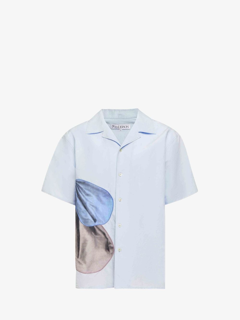 - Short sleeve cotton shirt complete with "Balloon" print motif - Back box pleat - Side slit - Tonal anchor embroidery at the hem - Relaxed fit, take your usual size Additional Information - Colour: Light Blue - Composition: 59% Linen, 41% Cotton - Light-weight cotton blend fabrication - Made in: China - SKU: SH0354PG1698804
