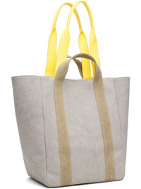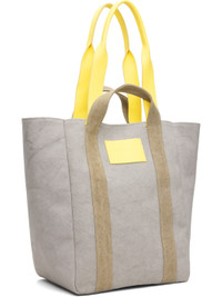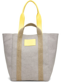 Cotton canvas tote. · Fading throughout · Fixed carry handles · Rolled buffed leather shoulder straps · Logo patch at face · Press-stud closure · Patch pocket at interior · H16" x W18" x D8.5" Supplier color: Beige Textile. Made in Hungary 252477M172005