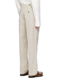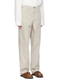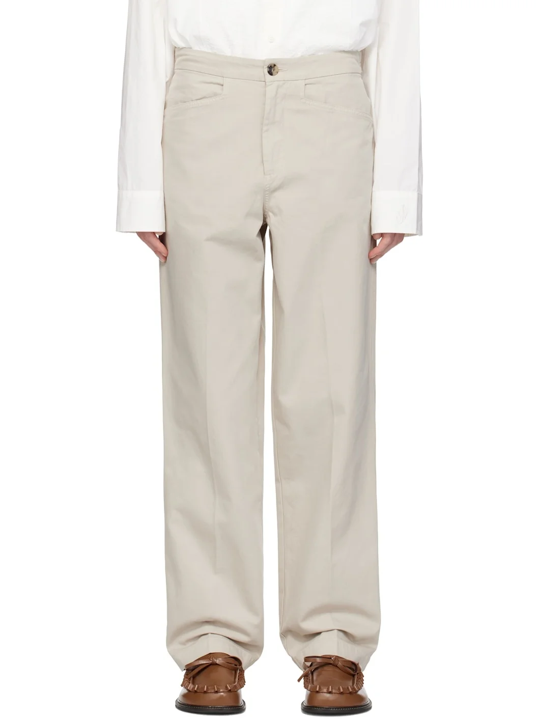 Loose-fit and straight-leg cotton twill trousers. · Mid-rise · Four-pocket styling · Zip fly · Adjustable button tabs at back waistband · Logo embroidered at back · Horn hardware Supplier color: Light grey 100% cotton. Made in Portugal 251477M191002
